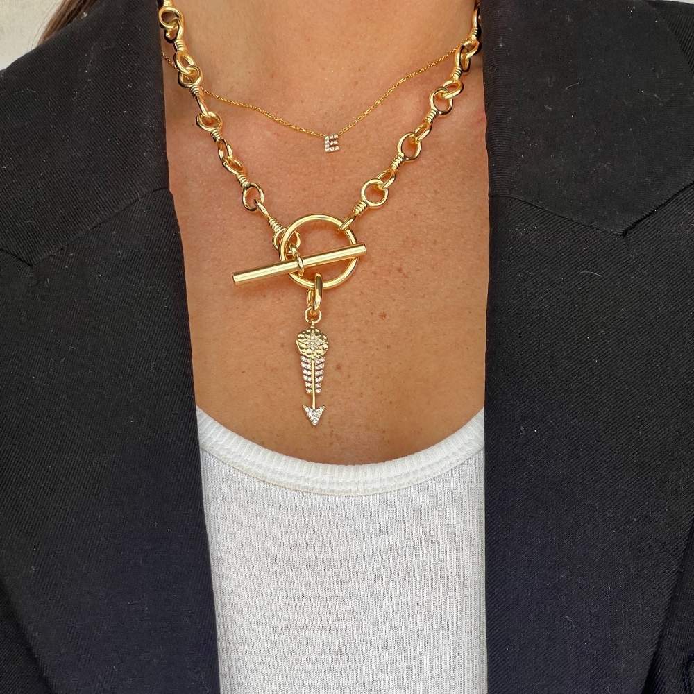 Add to your favourite Kitte chain with this gold arrow Artemis charm with a star detail encrusted with tiny crystal stones.
