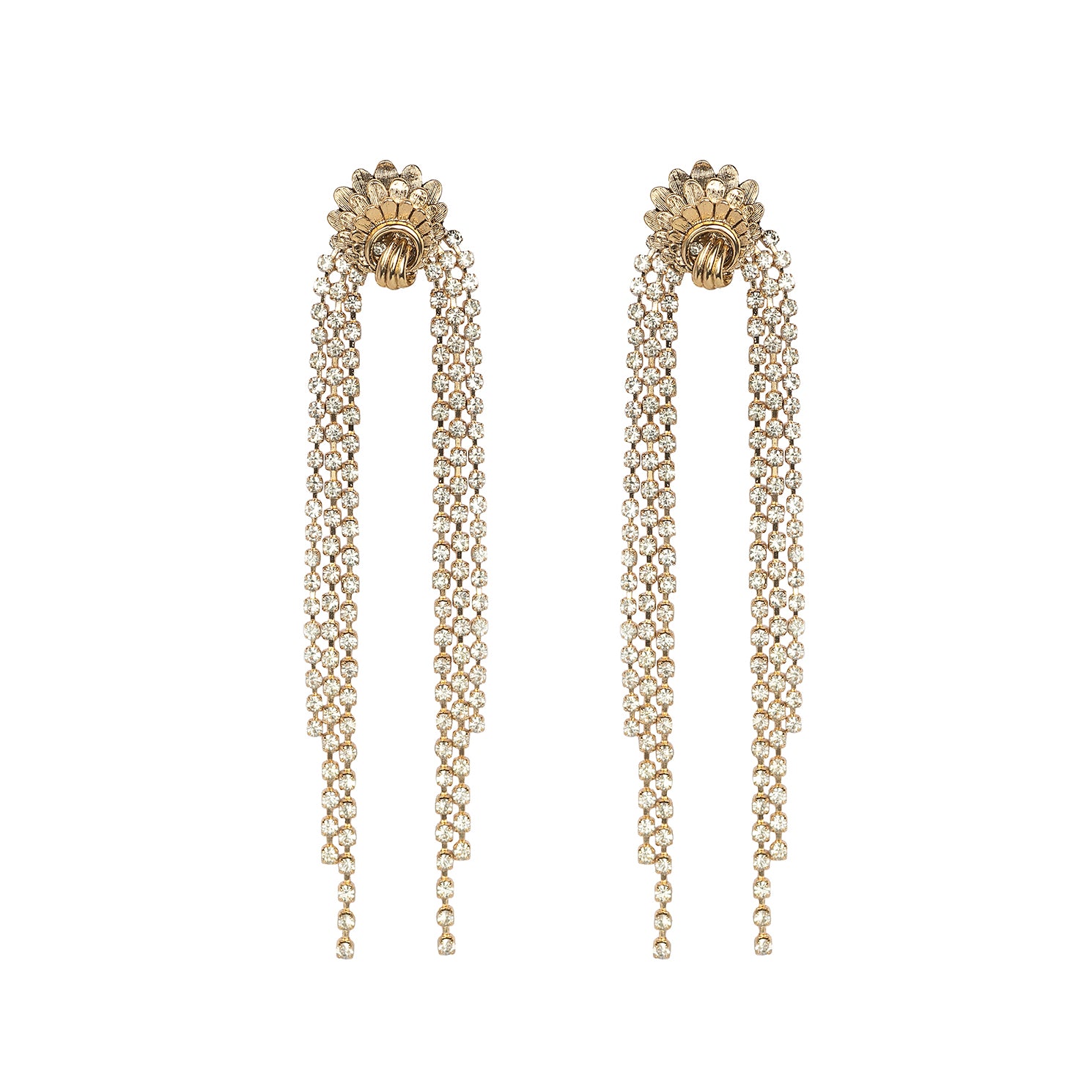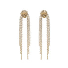Classic Gatsby vibes. A waterfall of Swarovoski crystals hang from an Art Deco inspired feature that sweep the shoulders. An easy light earring to dress up any outfit.