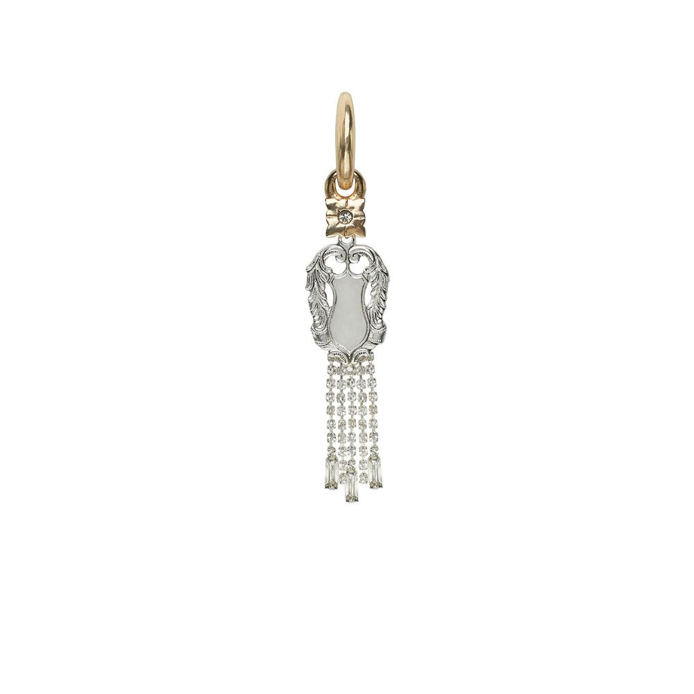 This two-toned Elixir Charm features a silver medallion, trailed by a waterfall of Swarovski crystals.