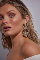 - Crafted from diamontes, enamel, and brass with a 12k gold plating.