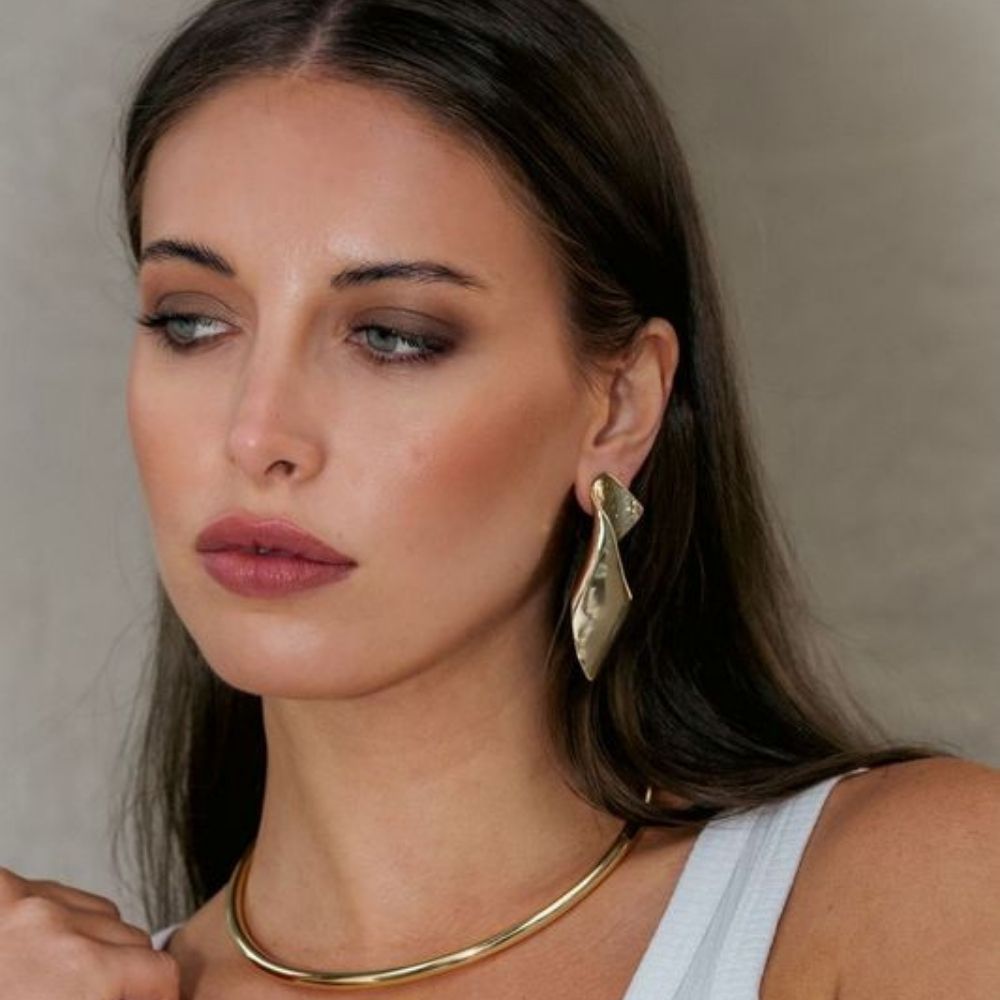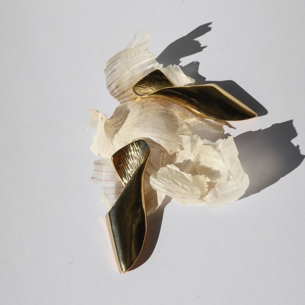 The Flow earrings curve and fold with a combination of a smooth and a signature Kitte textured finish.