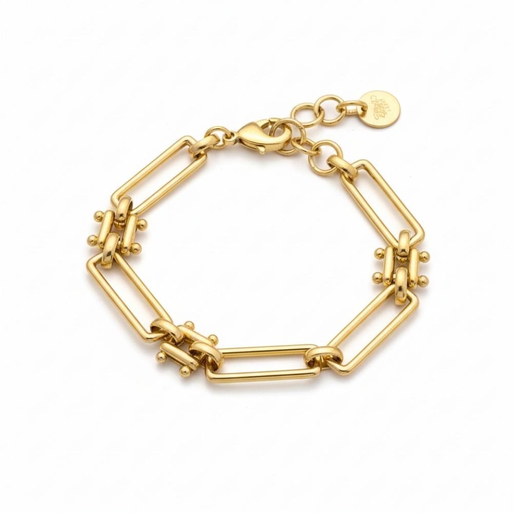 The Gold Hallmark Bracelet is perfect for wearing on its own or layering with your existing arm candy stack.