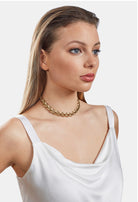 The gold Madera Necklace by Kitte is a bold earring inspired by a cuban-cool lifestyle. The epitome of elevated simplicity this choker style necklace featured textured links that sit flat against the skin. Available in antique gold and silver. Mariposa is a collection of opulent jewellery inspired by an alluring and mysterious Havana beauty.