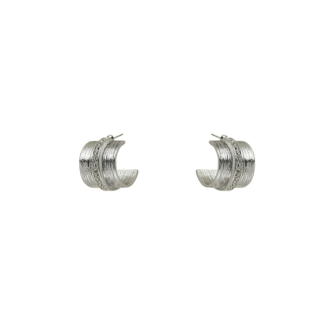 Our silver Patina Earrings are vintage inspired textured hoops with a strip of Swarovski stones.