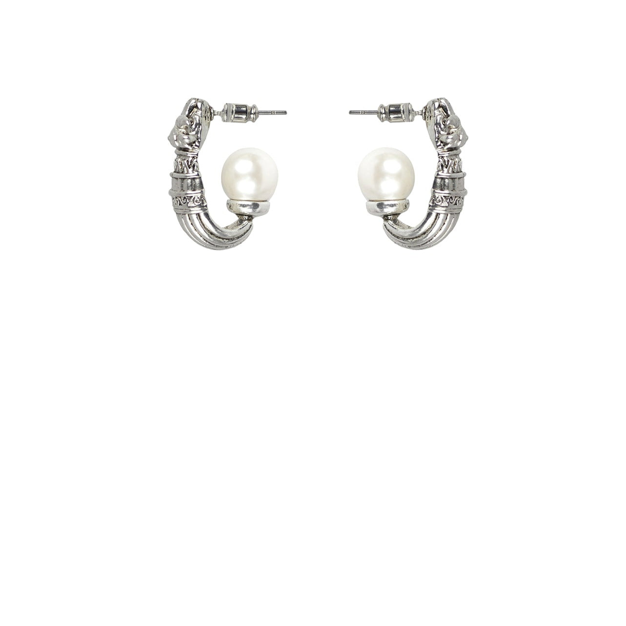 Tigre Stud Earrings by Kitte are half hoop studs embellished with luxe pearls. Sitting close to the ear these elaborate stud earrings are stunning from both the front, side and back view. Available in antique gold.