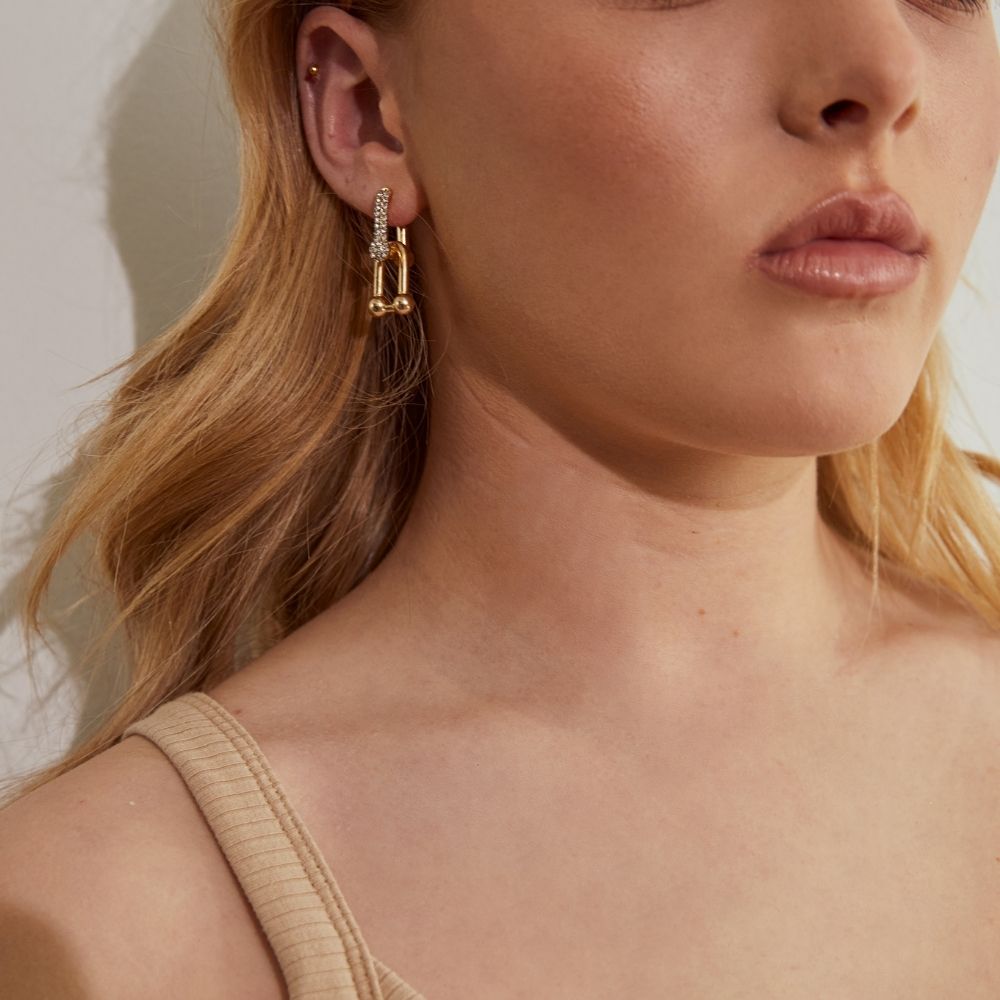 The Bond Pavé Earrings feature a sleek linked design, embellished with shimmering stones for a touch of sparkle. Elegant with a modern edge, they’re the perfect way to elevate both everyday and evening looks. The gold Bond Pavé earrings are perfect to wear on their own or to add interest to your ear stack.