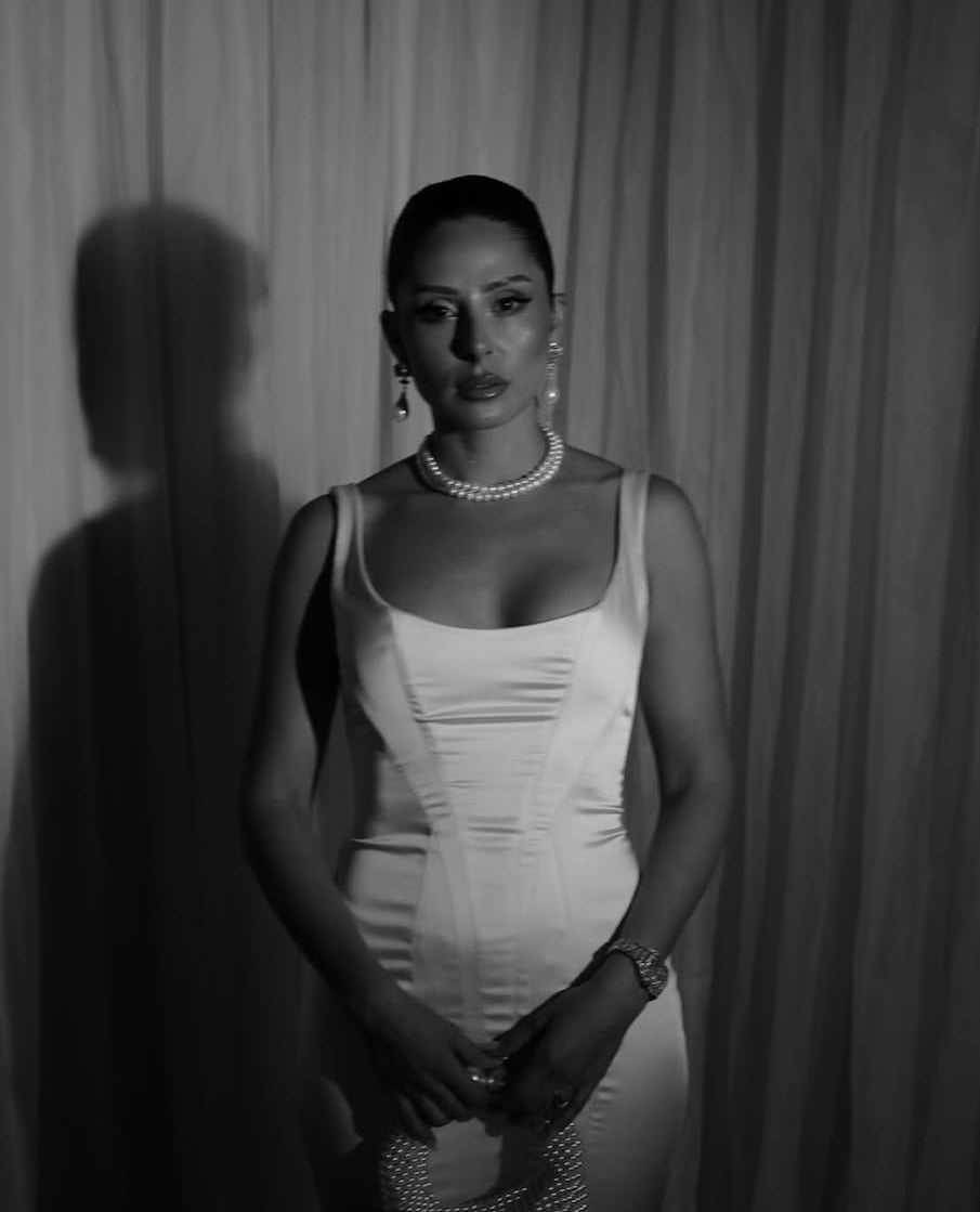 Beautiful Ness (@ness_mane) stuns in our Forever Pearl set, paired with a slickback hair look and a pearl bag.