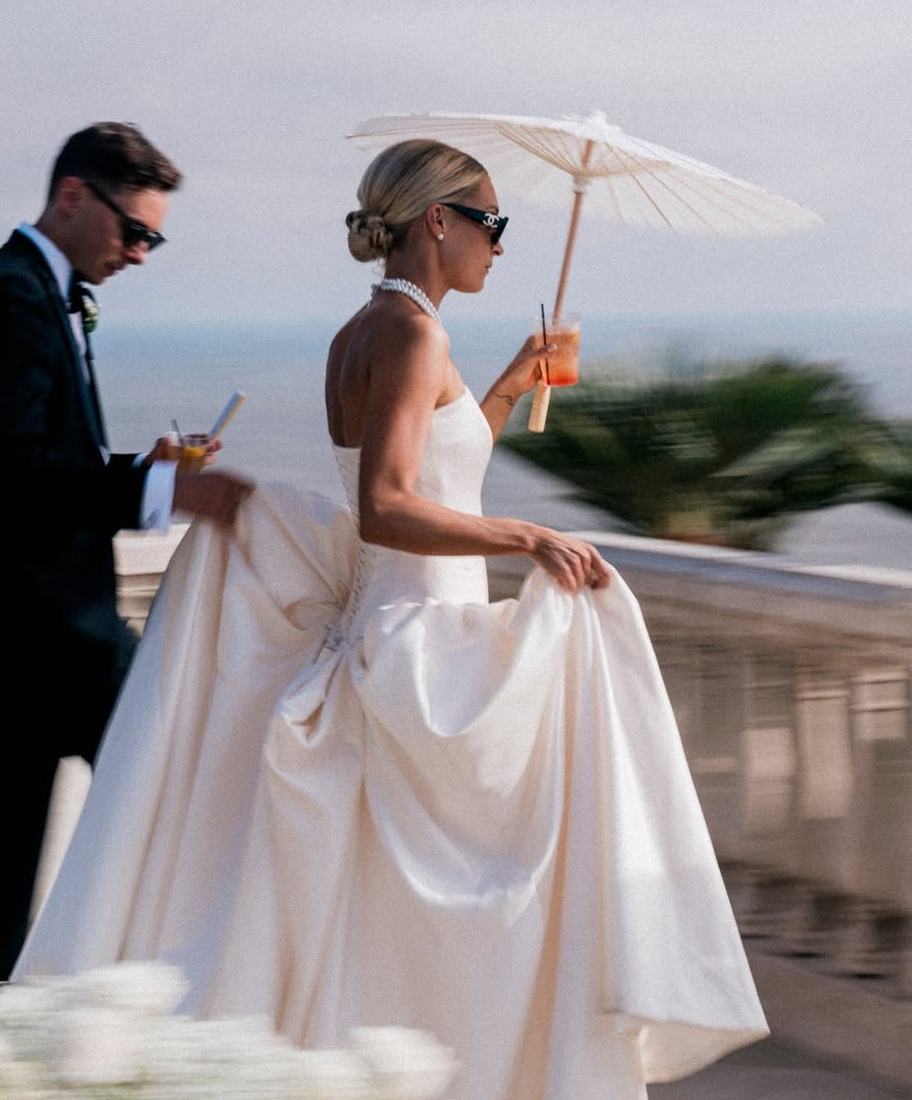 Kristine Hansine (@kristinehansine) pairs the Forever Pearl necklace with a dainty parasol, Chanel sunglasses, and (obviously) an Aperol spritz at her dreamy Lake Como reception.