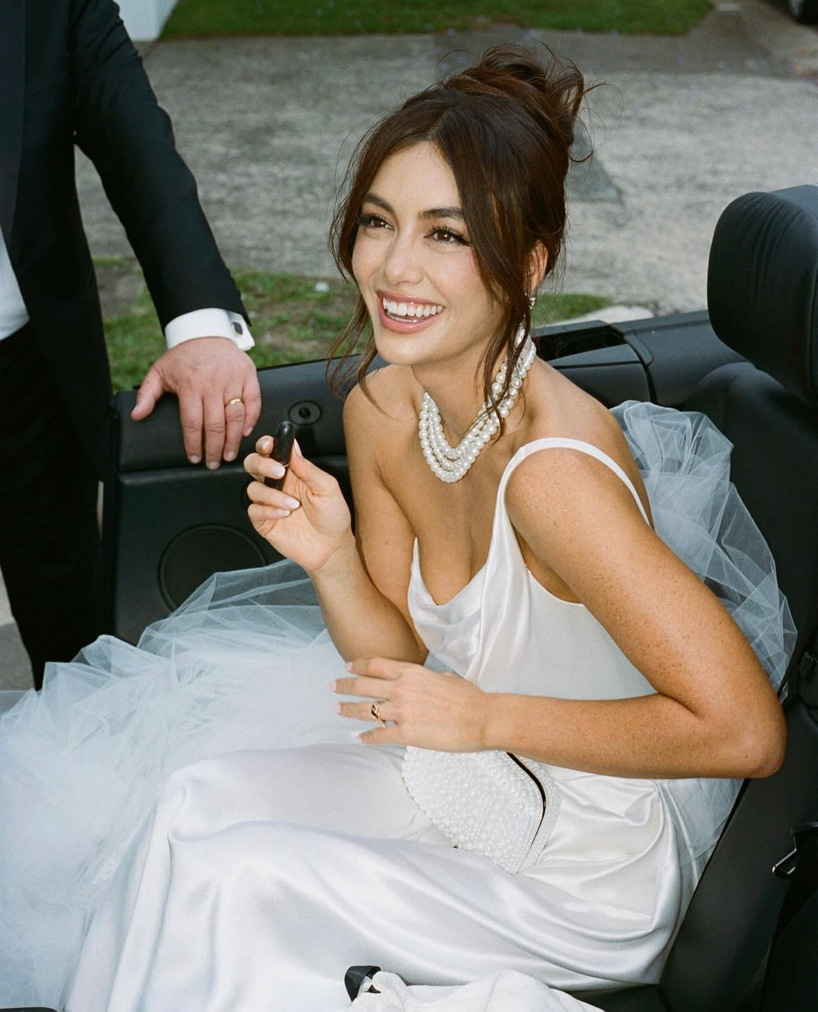 As featured in Vogue, former Miss Universe Australia Francesca Hung (@francesca.hung) wore a dress from Oglia-Loro Couture, with styling by @styled_by_bloom. Her fairy garden wedding was adorned with satin bows and pearl accents.