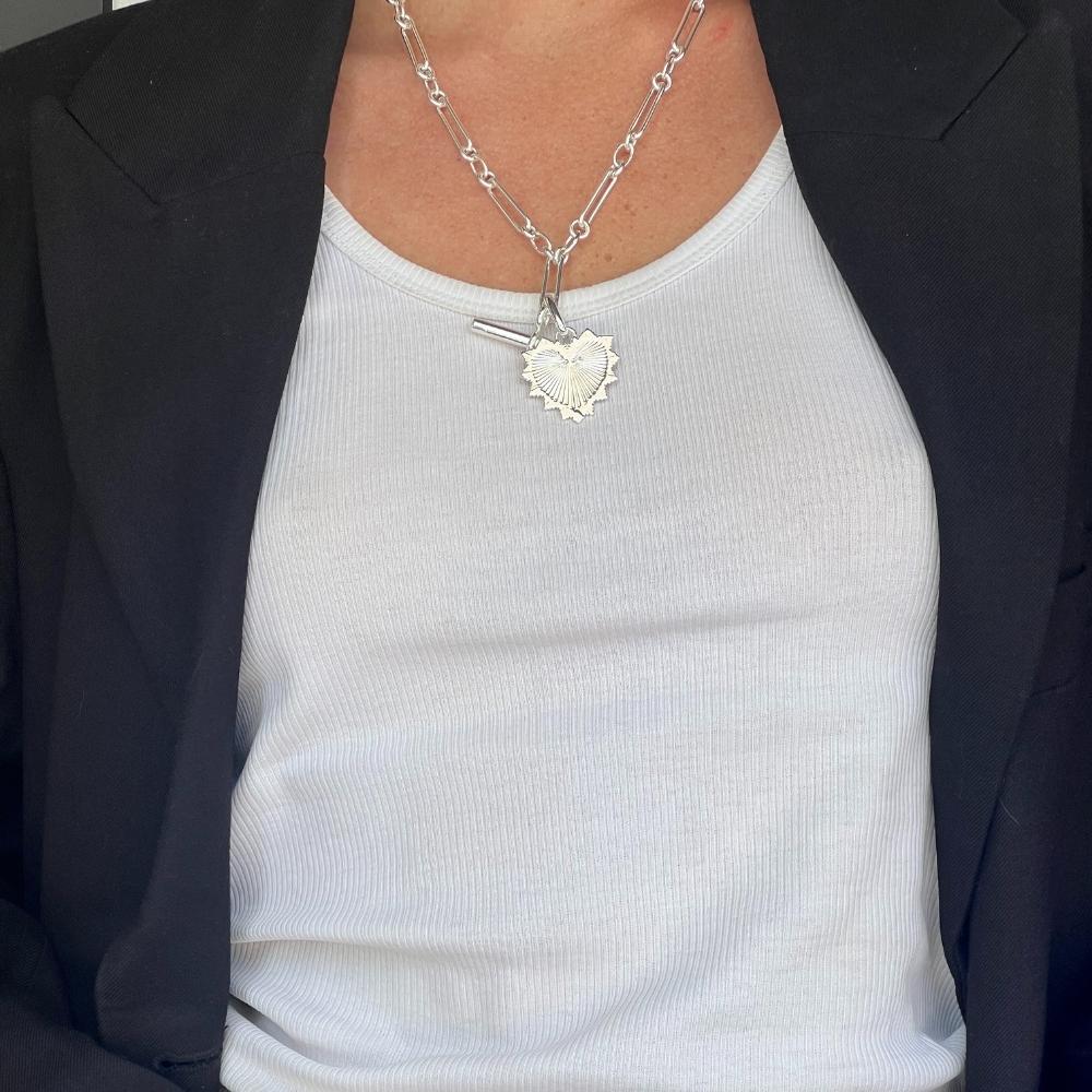 The Kitte Amour charm silver is the perfect romantic addition to any chain necklace, featuring delicate engravings upon a heart.
